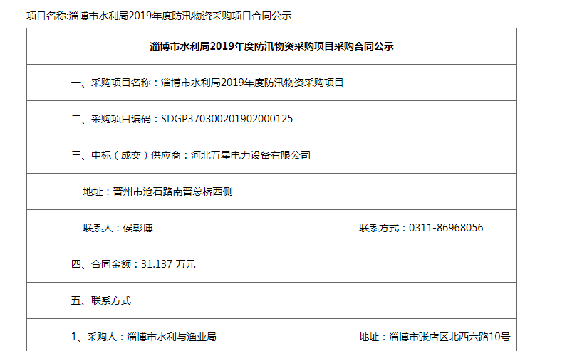 熱烈祝賀河北五星淄博市水利局2019年度防汛物資采購項目一舉中標!